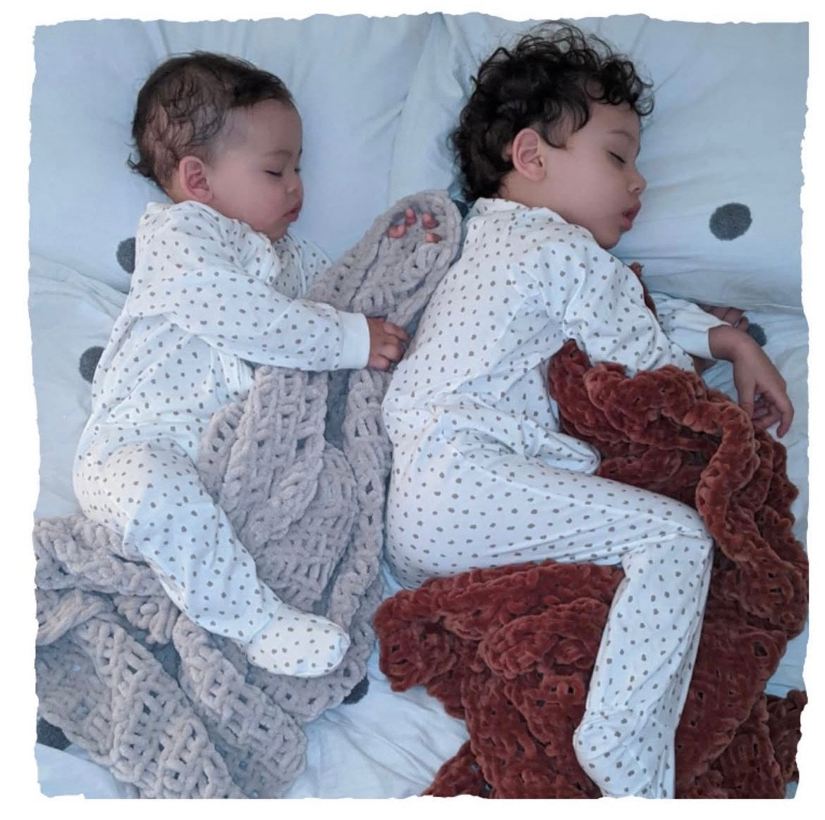 Snuggle Square Baby Comforter | Hand-Knitted Velvet Chenille, Super Chunky Knit (No Dummy Loop)