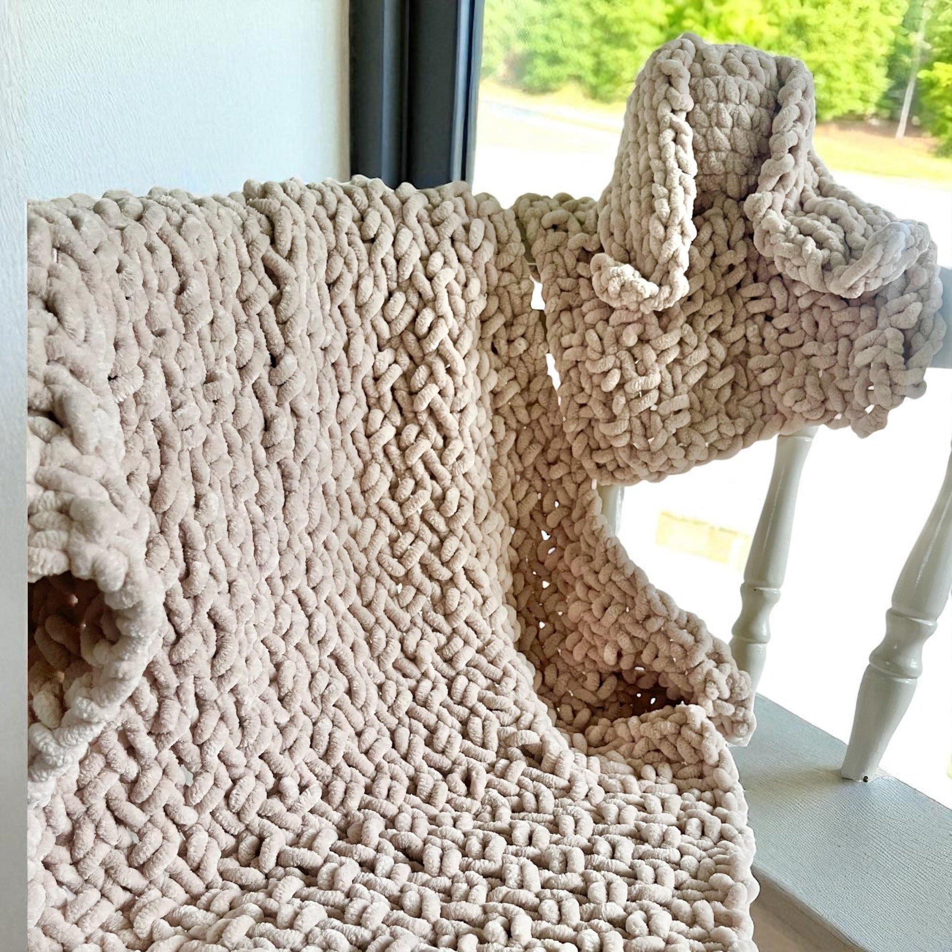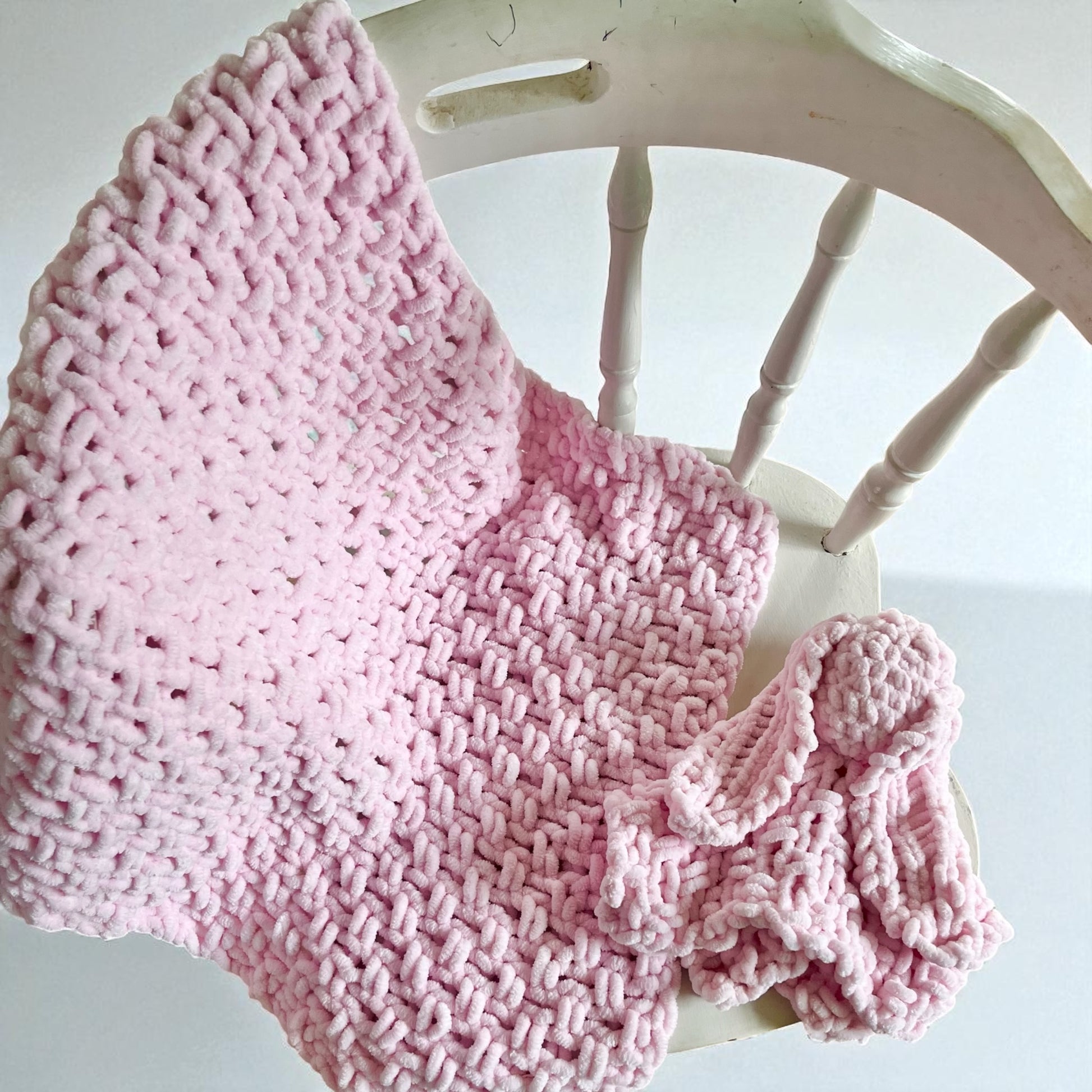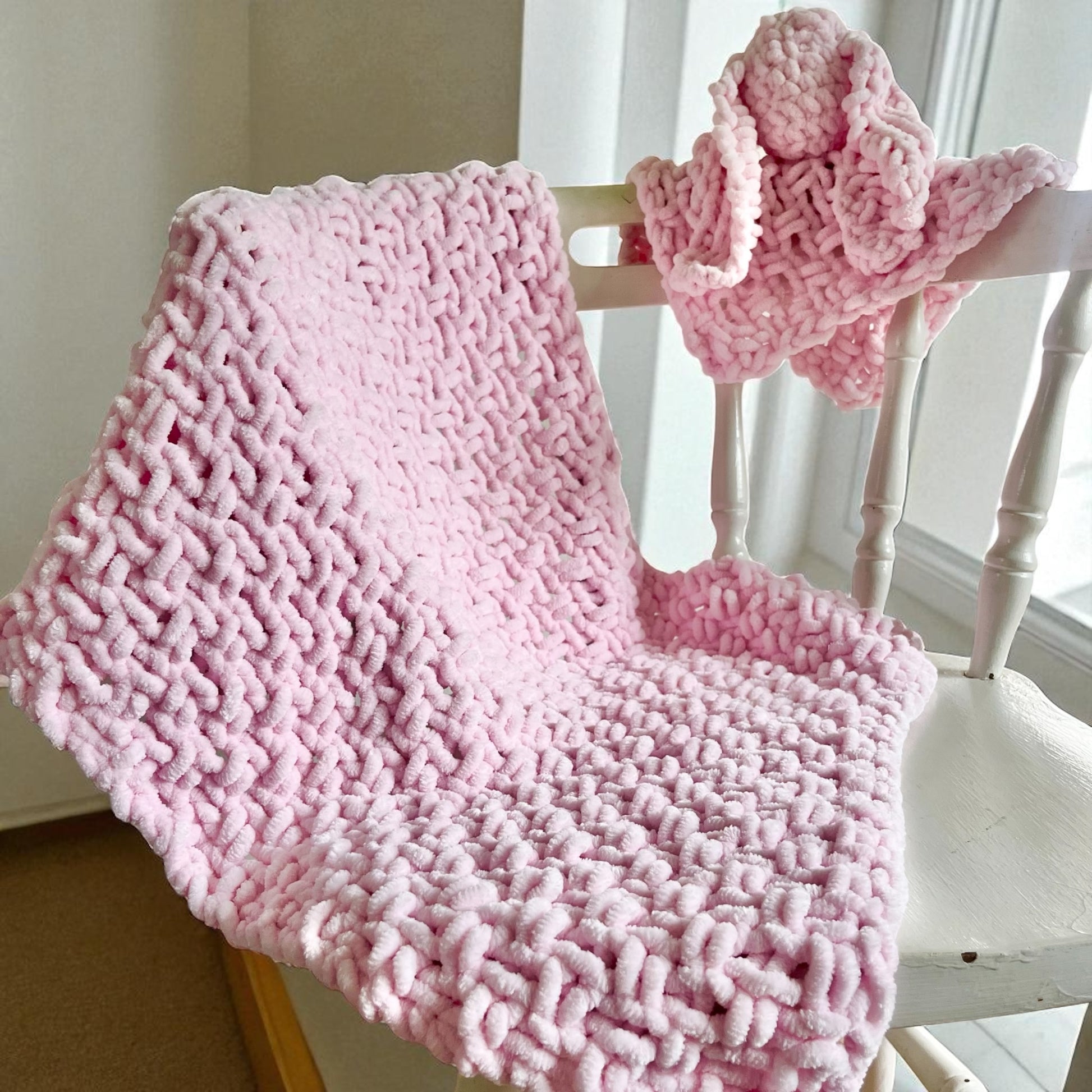 Both are crafted with the same luxurious, chunky chenille yarn, making them irresistibly soft, durable, and super cosy. Choose your favourite colours for both the blanket and the bunny to create a truly personalised set.
