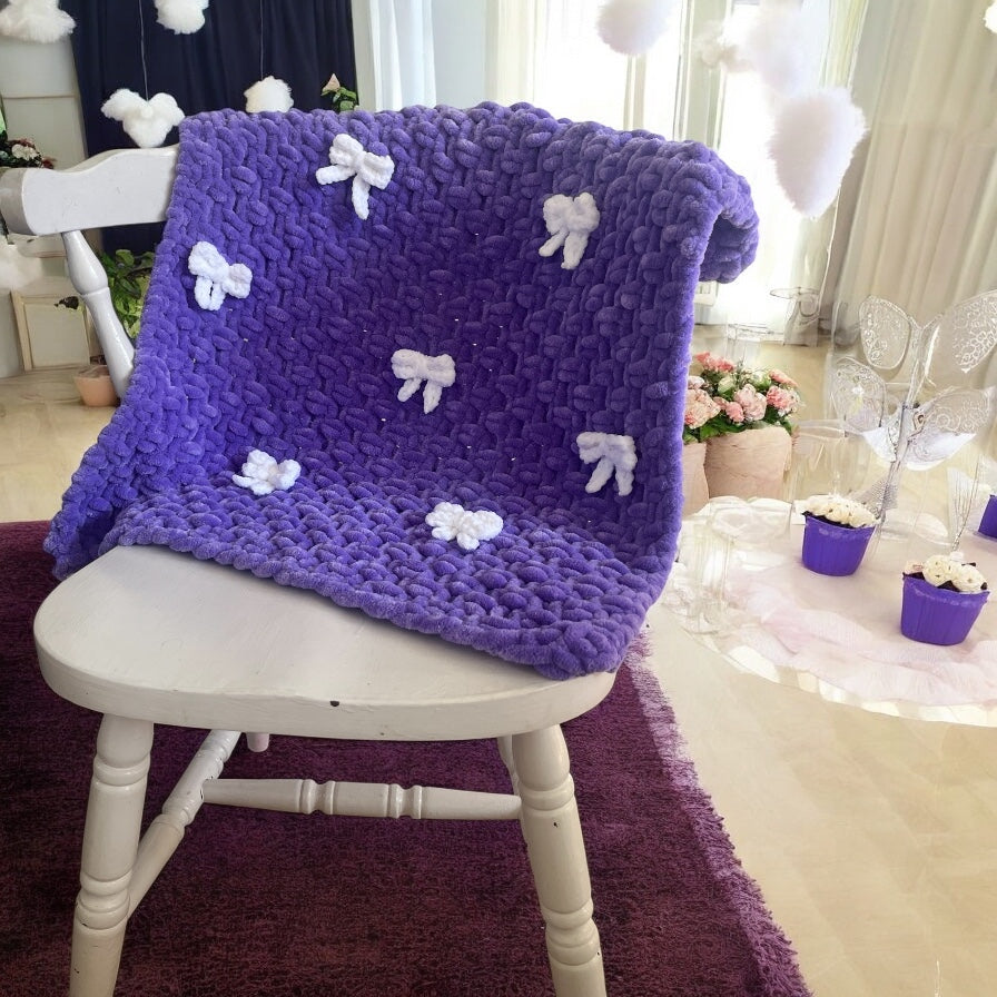 Our Knitted Chenille Baby Blanket with Bows is designed to offer the perfect balance of comfort, style, and practicality. Handcrafted with ultra-soft chenille yarn, this blanket is gentle on delicate baby skin and makes a timeless keepsake for nurseries and baby gifts.
