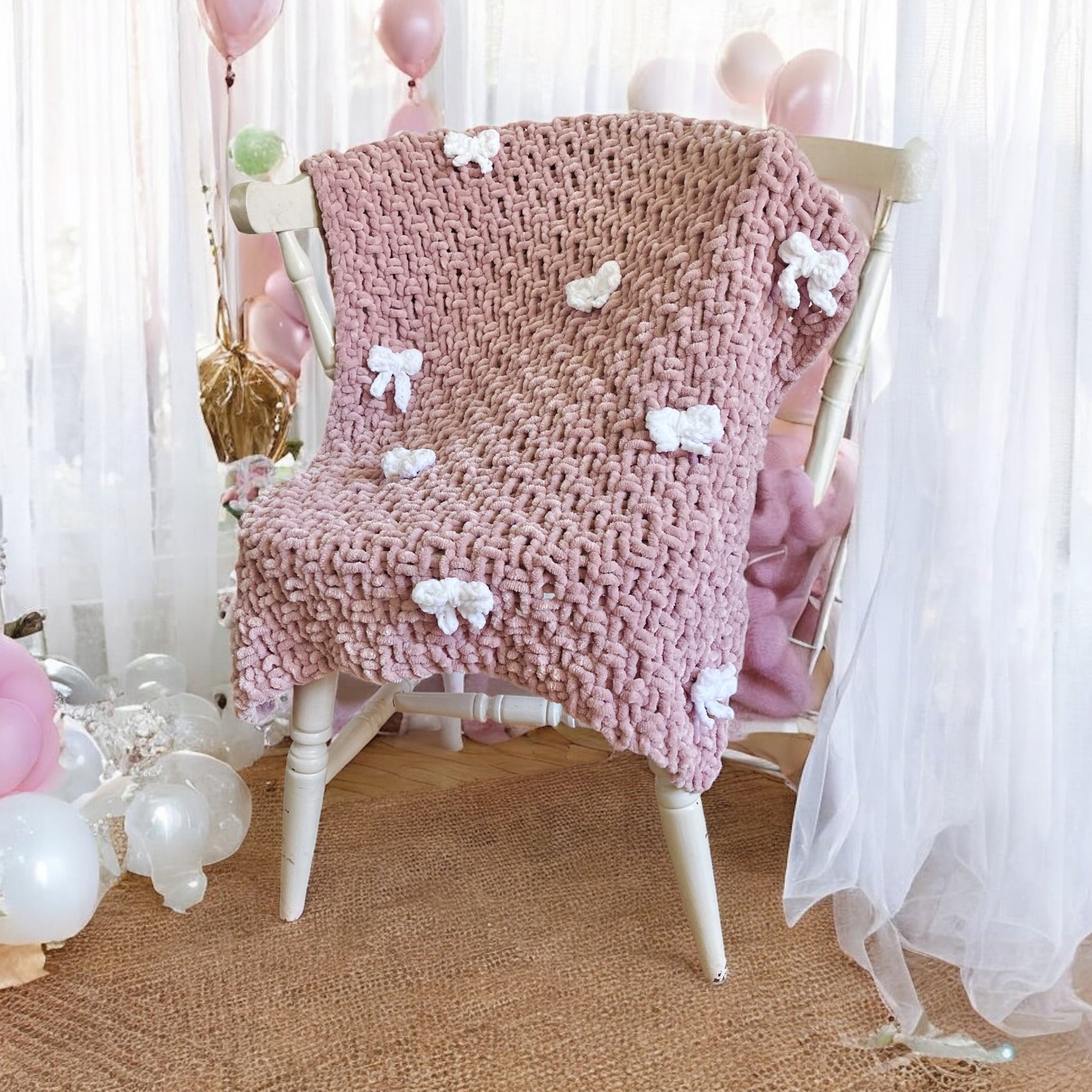 Pre-made toddler bow blanket in Dusky Pink (70x90cm)